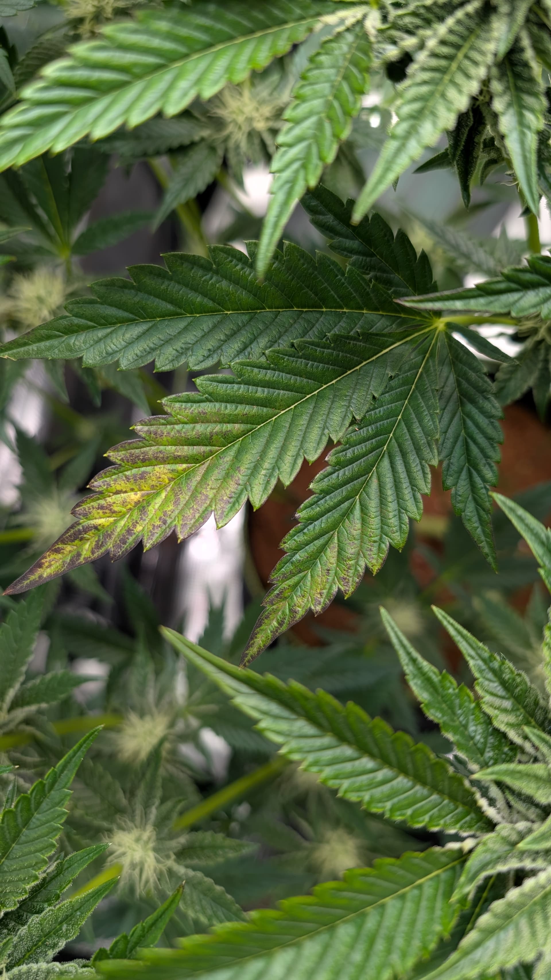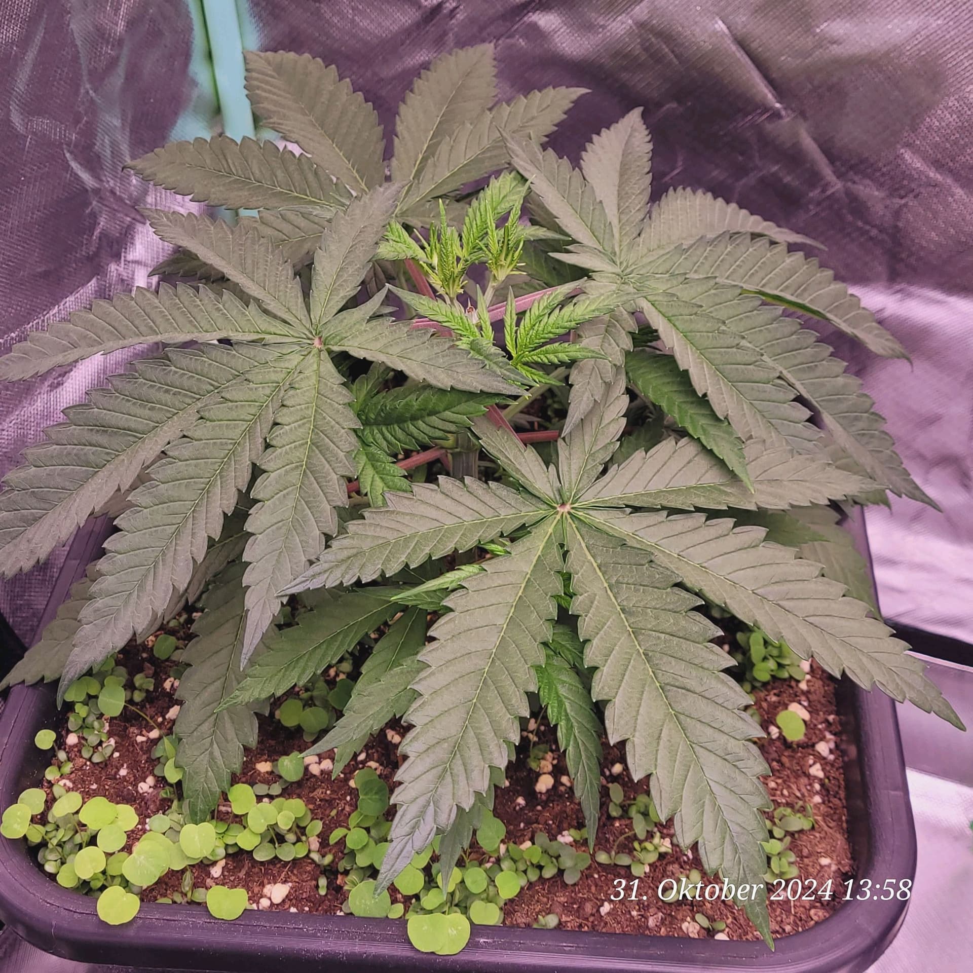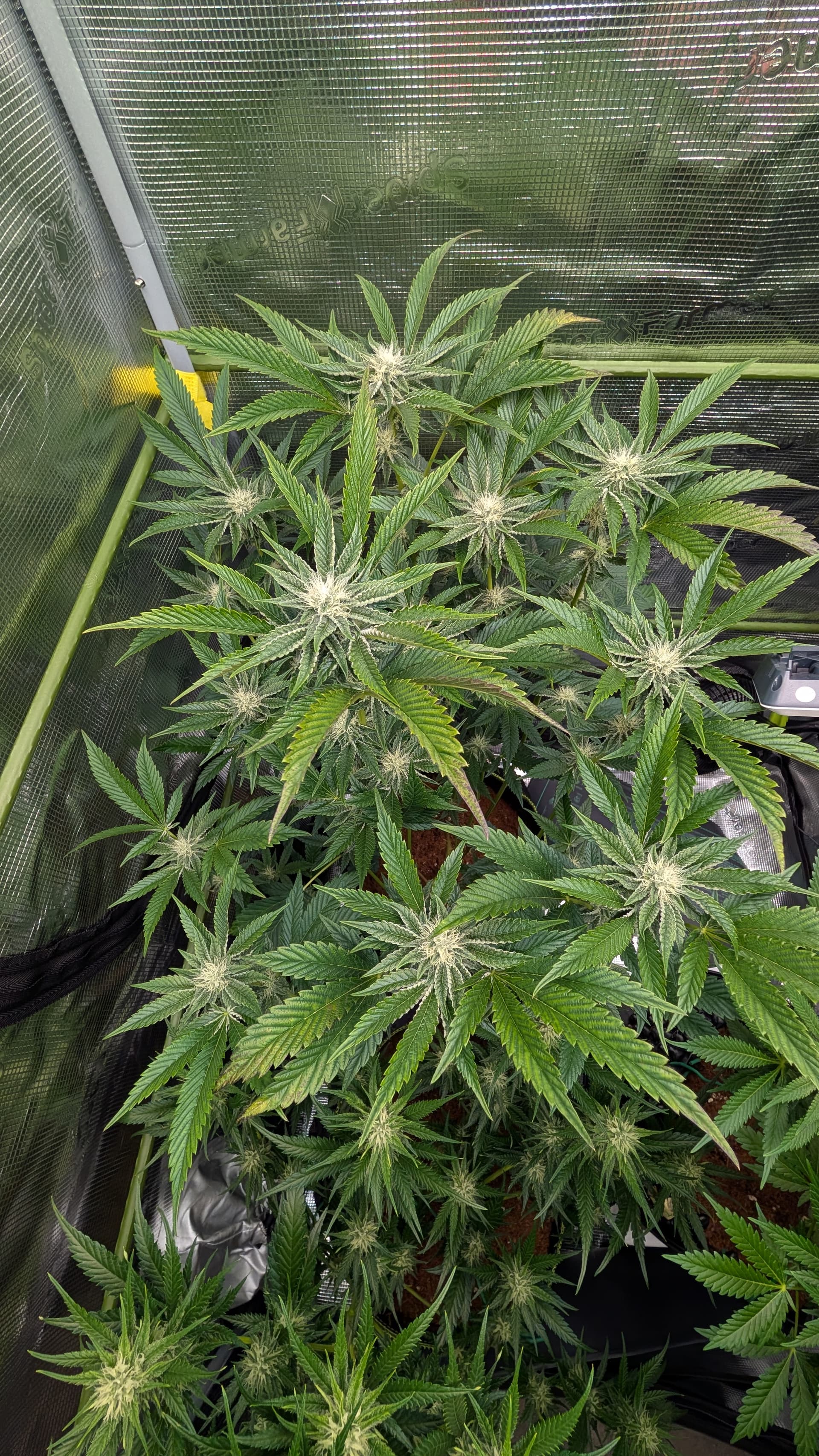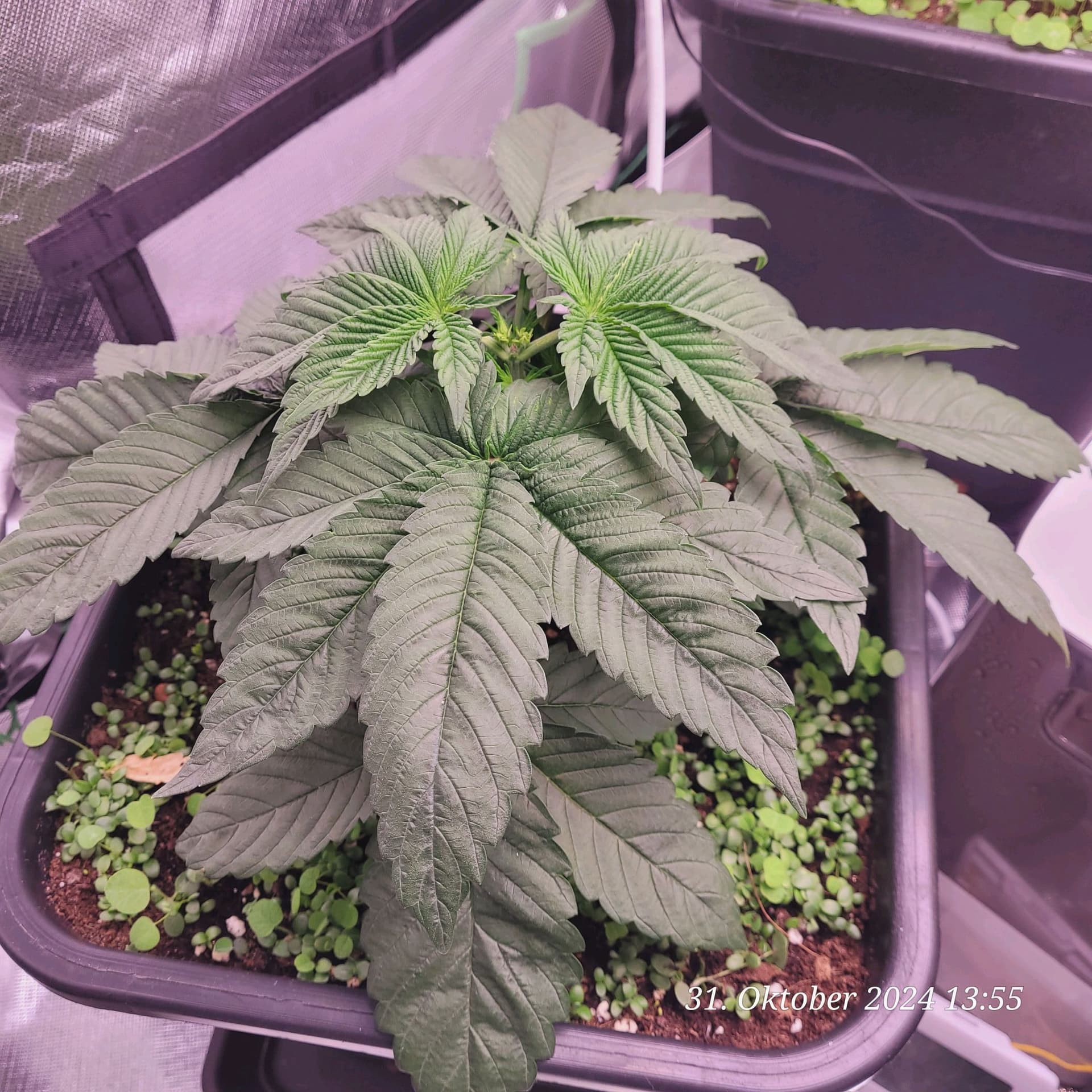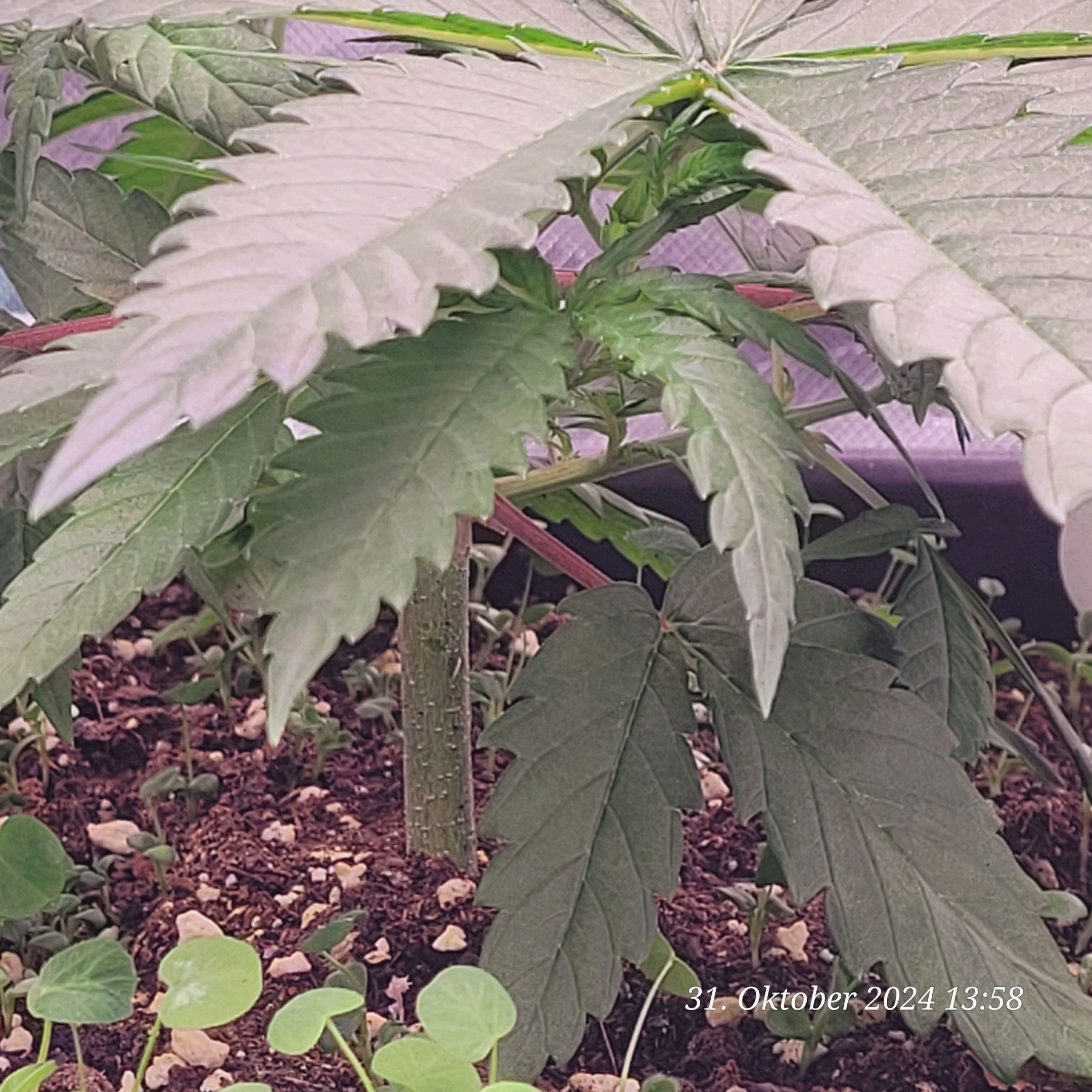 Denke nur , das ich immer noch die Erde zu stark an gemischt habe weil manche Blätter sehr Stickstoff satt aus sehen . Den Dimmer hab ich noch mal auf 50 % runter gemacht von 60 % weil die Nodien sehr Dicht an einander liegen , aber fette Ästchen die sich da bilden .