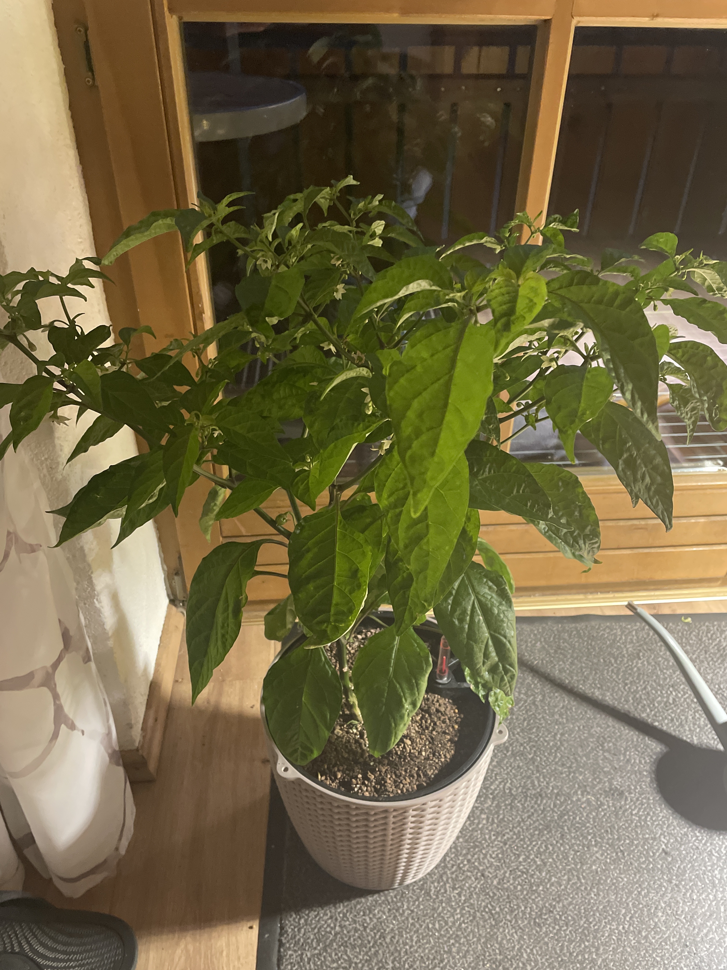 - Wenn sie drinnen war Stand sie neben den Lemonhabaneros und die geben viel Wasser an die Luft ab (braucht ca 2 Liter Wasser pro Tag)