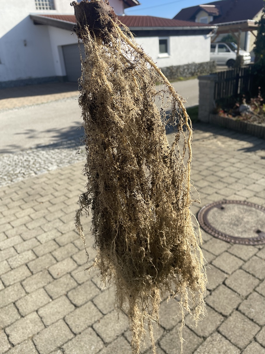 Was ich sah gab mir Hoffnung, schönes dichtes Wurzelgeflecht mit dicker Pfahlwurzel,.