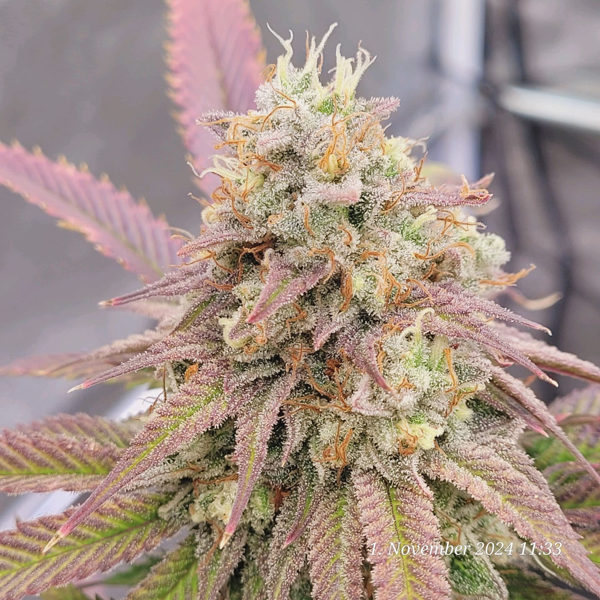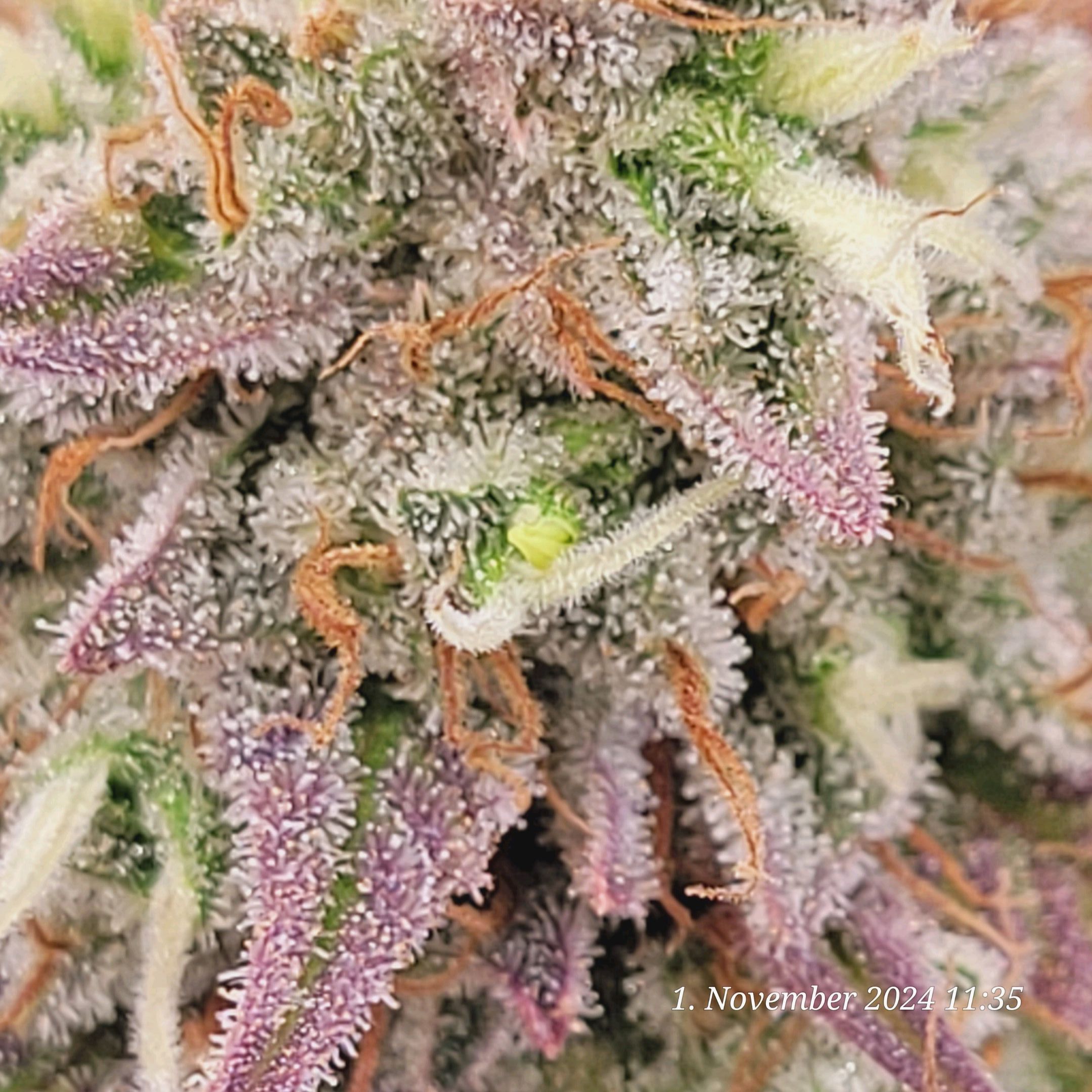 Irgendwie rafft die sich noch mal, auf ihre letzten Tage, so richtig auf und schmeißt ein Teppich voller neuer hellen Pistillen . Genial , noch mehr Trichome .