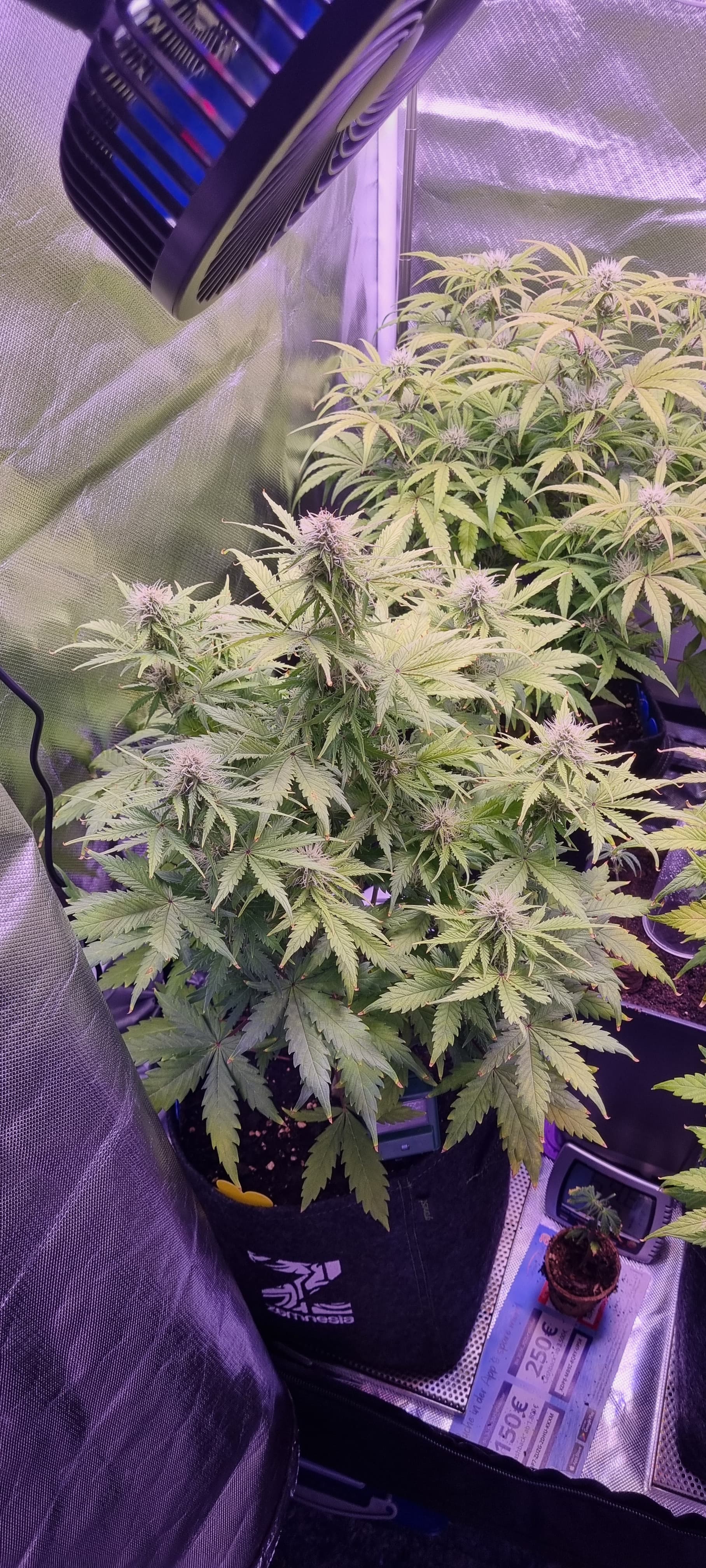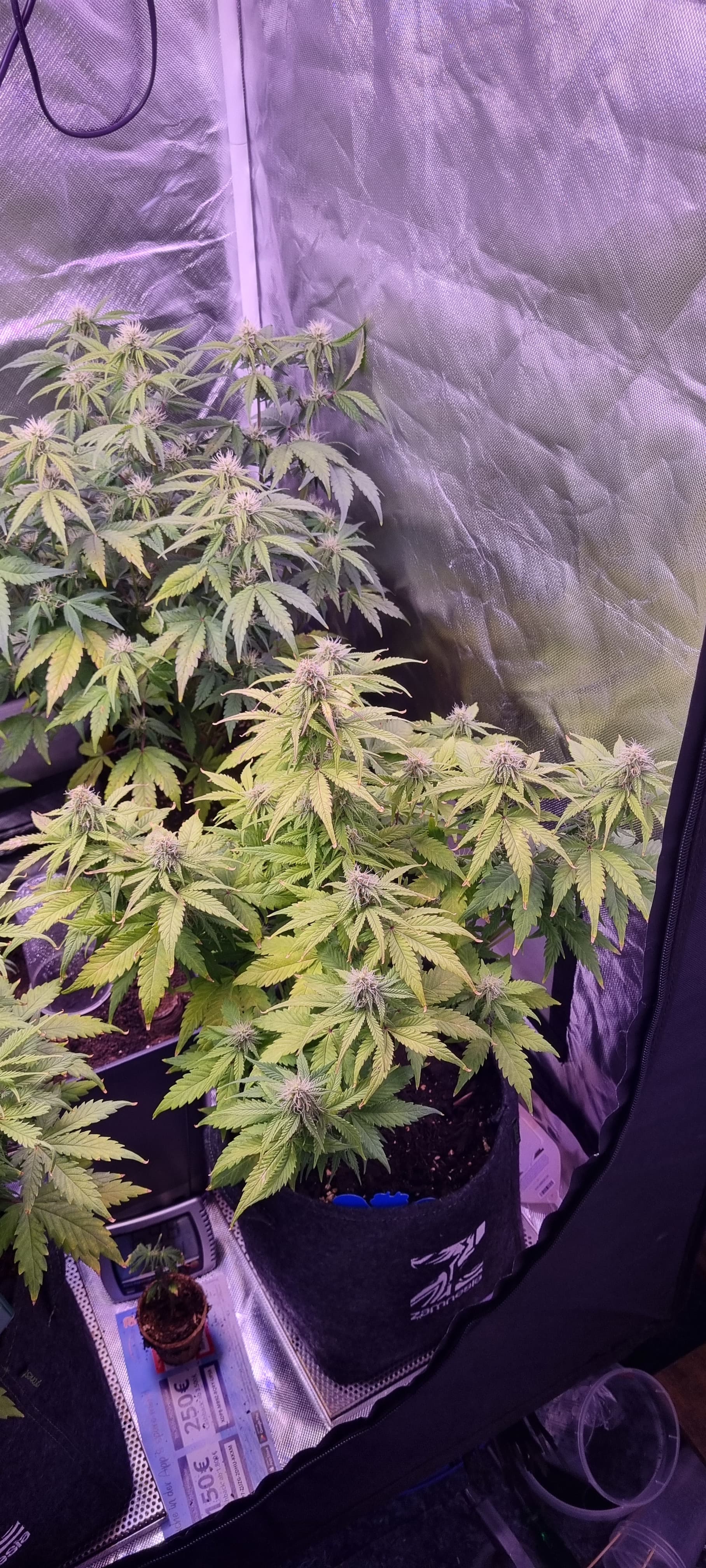 Heute kommt das lila Licht rausgeschmissen und gegen ne Mars Hydro ausgetauscht mal sehen was es bringt und somit kriegen die beiden Balkonpflanzen 130 cm und 145 cm auch jede ne Lampe über die Krone um die letzten 2 Wochen noch ordentlich power zu haben im Wohnzimmer beim Nachbarn .