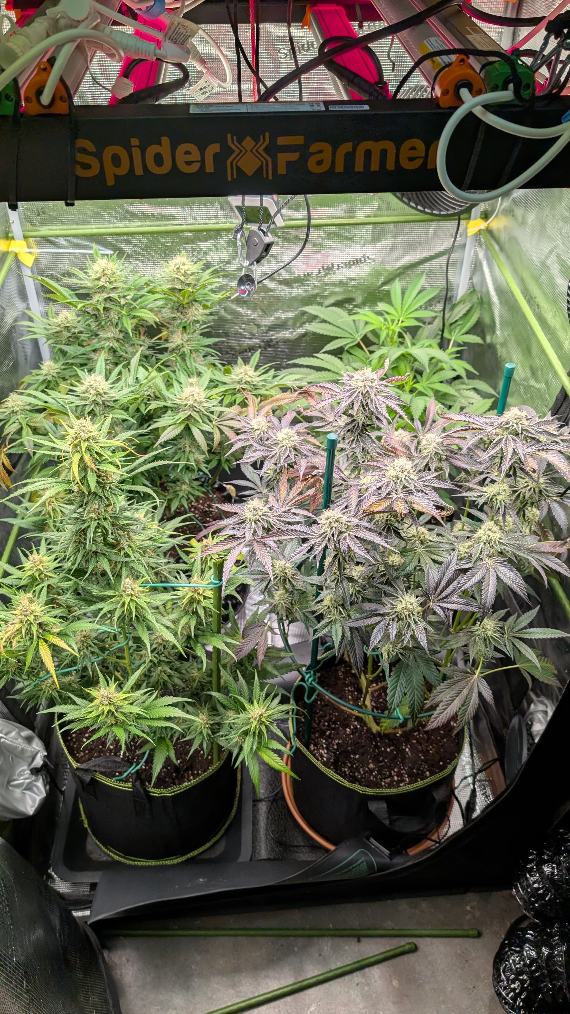 Gebe mal in dem Topf mit der am schlimmst aussehenden , noch was Wasser nach bis etwas unten raus kommt . Das Drain Wasser , messe da mal den EC und den PH .